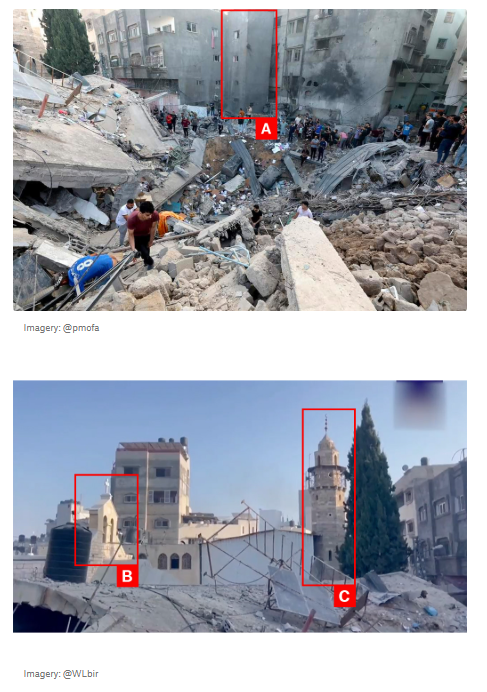 On Twitter/X, @AvichayAdraee, the IDF Spokesperson, declared that Israeli forces intended to strike a target adjacent to the church, allegedly used as a Hamas command center. "Statement regarding the airstrike that targeted an area near the Greek Orthodox Church in Gaza: Israeli Air Force warplanes struck, the day before yesterday, a command and control center belonging to a Hamas operative involved in launching rockets and mortar shells toward Israel, in the Zaytoun neighborhood. This command center was used to carry out attacks against Israel and contained infrastructure belonging to the Hamas terrorist organization. Any damage resulting from the Israeli airstrike was collateral and unintended. The Israel Defense Forces can state unequivocally that the church was not the target of this strike. Hamas deliberately places its operational facilities within populated civilian areas, exploiting the residents of the Gaza Strip as human shields. In order to reduce harm to civilians, the Israel Defense Forces have requested residents of northern Gaza to evacuate southward beyond Wadi Gaza. The IDF continues to urge residents of northern Gaza to evacuate the area in accordance with military instructions."