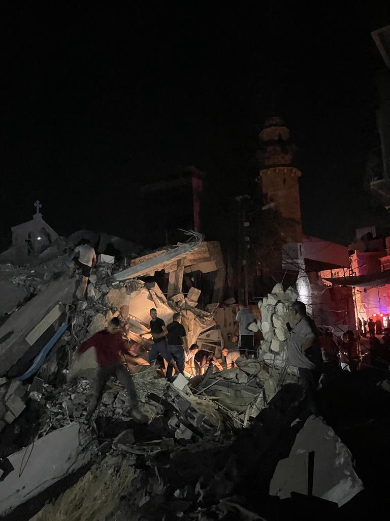 The Holy Orthodox Foundation of Saint George, quoted by @ytirawi on Twitter/X, claimed that Israeli forces targeted โ€œthe hall of the church with four missilesโ€, while The Guardian reported that โ€œa missile brought down part of the complexโ€. Ibrahim Al-Souri, a survivor, interviewed by Al-Jazeera, told the media that โ€œtwo raidsโ€ hit the building.