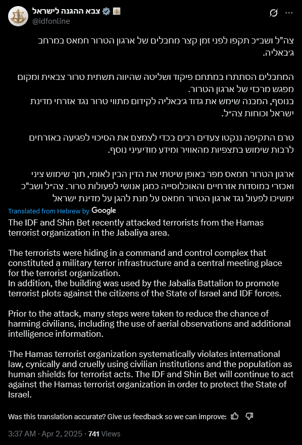Around 10 am, an Israeli airstrike targeted an UNRWA medical clinic in the center of Jabalia which was used as shelter by displaced Palestinians.