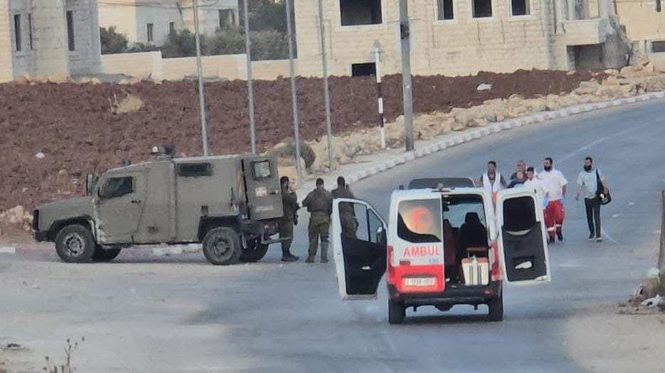 Israeli soldiers detained a Red Crescent ambulance team at the entrance of Al-Mughayyir